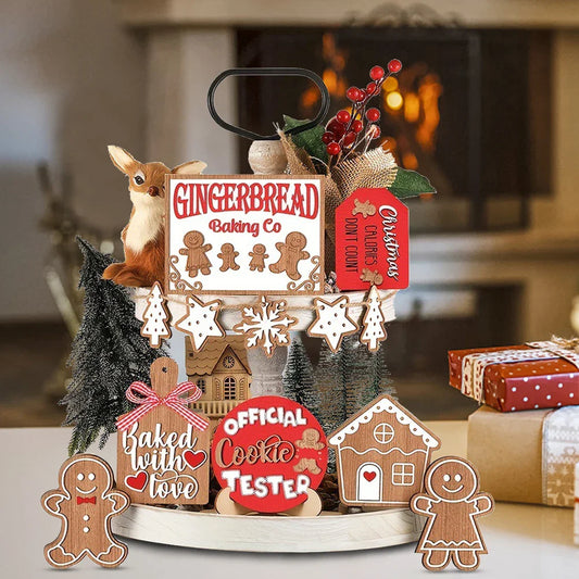 Zestaw 12 Rustykalnych Drewnianych Ozdób Świątecznych – Dekoracje na Ścianę i Tacę do Wnętrz
