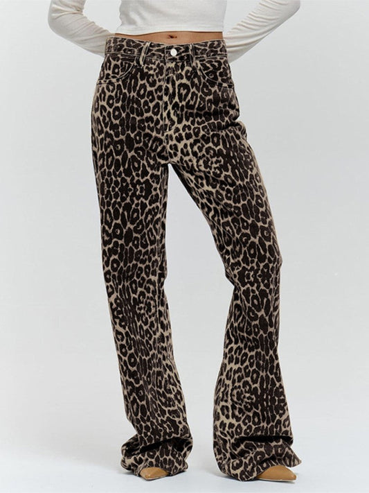 Lola - Spodnie z wysokim stanem i rozszerzanymi nogawkami w wzór panterki