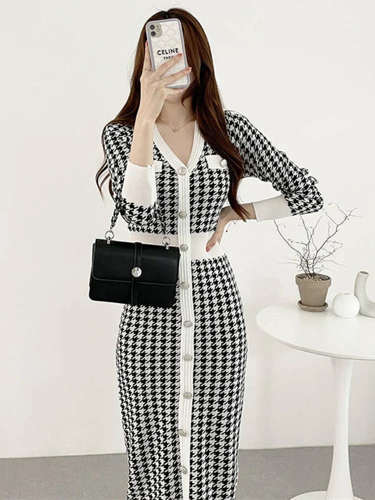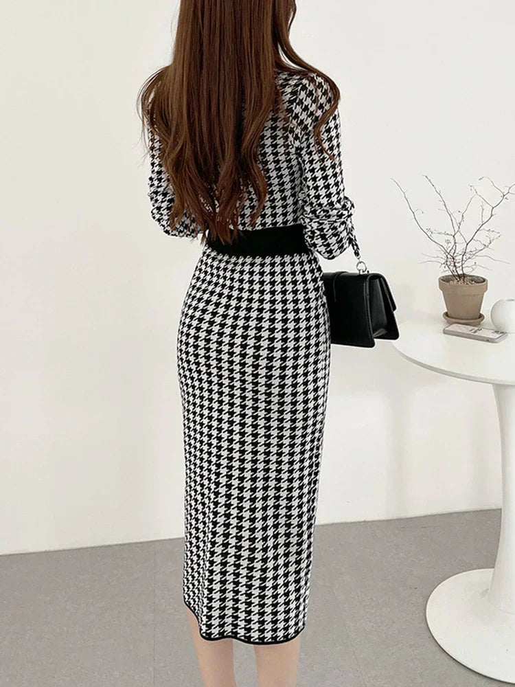 Charlotte – Stylowa midi-sukienka w wzór pied-de-poule