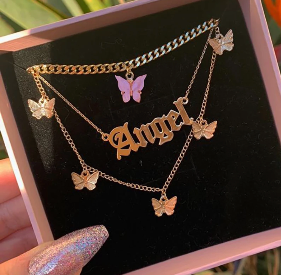 Dodaj odrobinę elegancji i symboliki do swojej kolekcji biżuterii z zestawem łańcuszków na kostkę z aniołem i motylami!