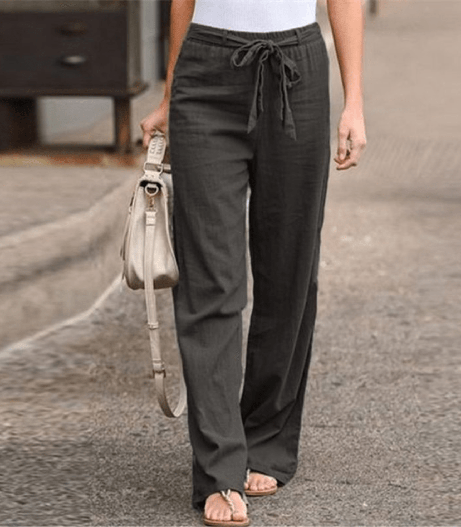 EMMA | Wygodne Lniano-Bawełniane Spodnie z Elastycznym Pasem i Sznurkiem