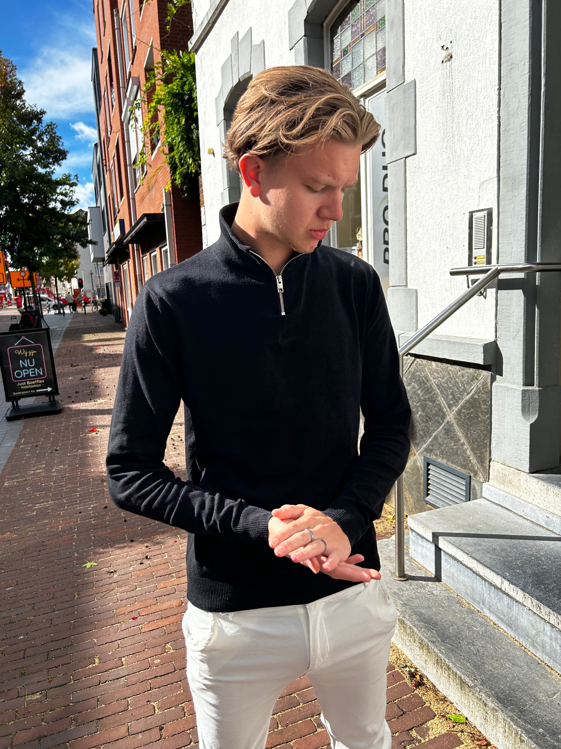 Odkryj Komfort i Styl z naszym Męskim Swetrem z Pół-Zipem Harvey Simple. Wykonany z wysokiej jakości kaszmiru, ten sweter zapewnia miękkie i ciepłe doznania, idealny na wiosnę i jesień.