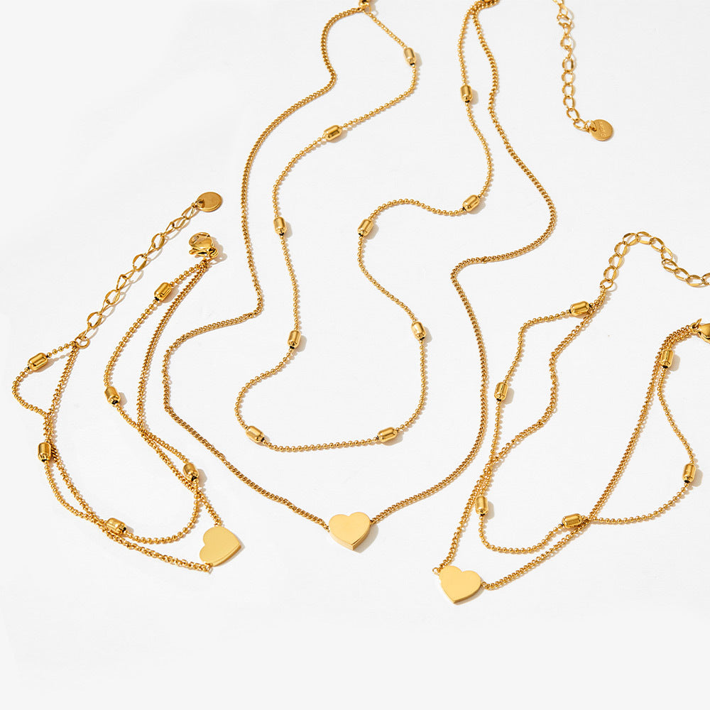 Wprowadź romantyczny i wyrafinowany styl do swojej kolekcji biżuterii z Podwójną Bransoletką Na Kostkę Pozłacaną 18K Z Serduszkami!