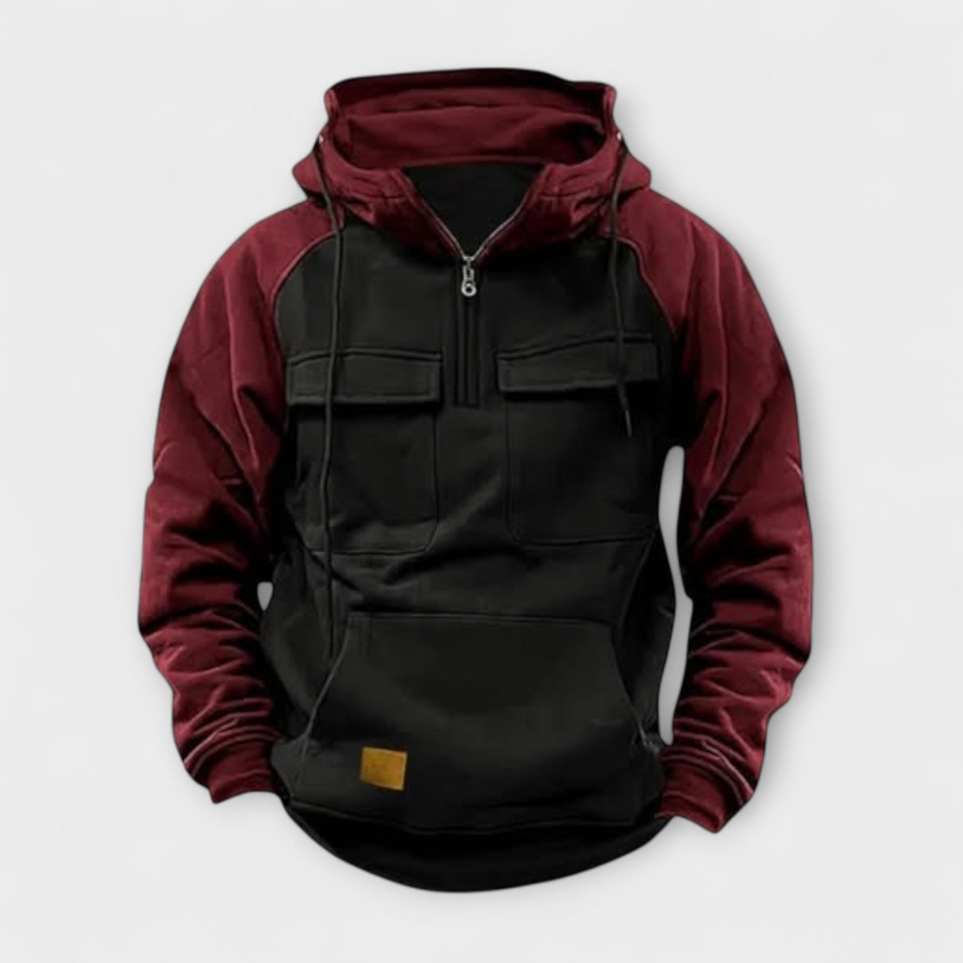 Łączy bezwysiłkowy styl z maksymalnym komfortem. Dzięki pół-zamkowi, praktycznym kieszeniom na piersi i kontrastującym rękawom, ten sweter jest zarówno funkcjonalny, jak i modny. Idealny na relaksujący dzień lub casualowy moment na zewnątrz.