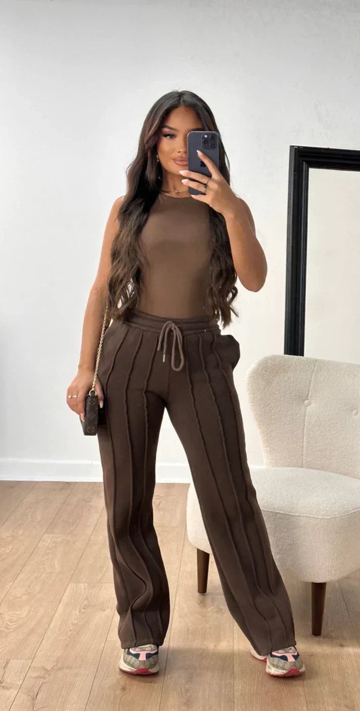 Spodnie athleisure Milan łączą współczesny styl z wyjątkowym komfortem. Dzięki slim fit, elastycznemu pasowi i subtelnym detalom, te spodnie są idealnym wyborem na każdą okazję – od casualowego dnia w mieście po relaksujący wieczór w domu.