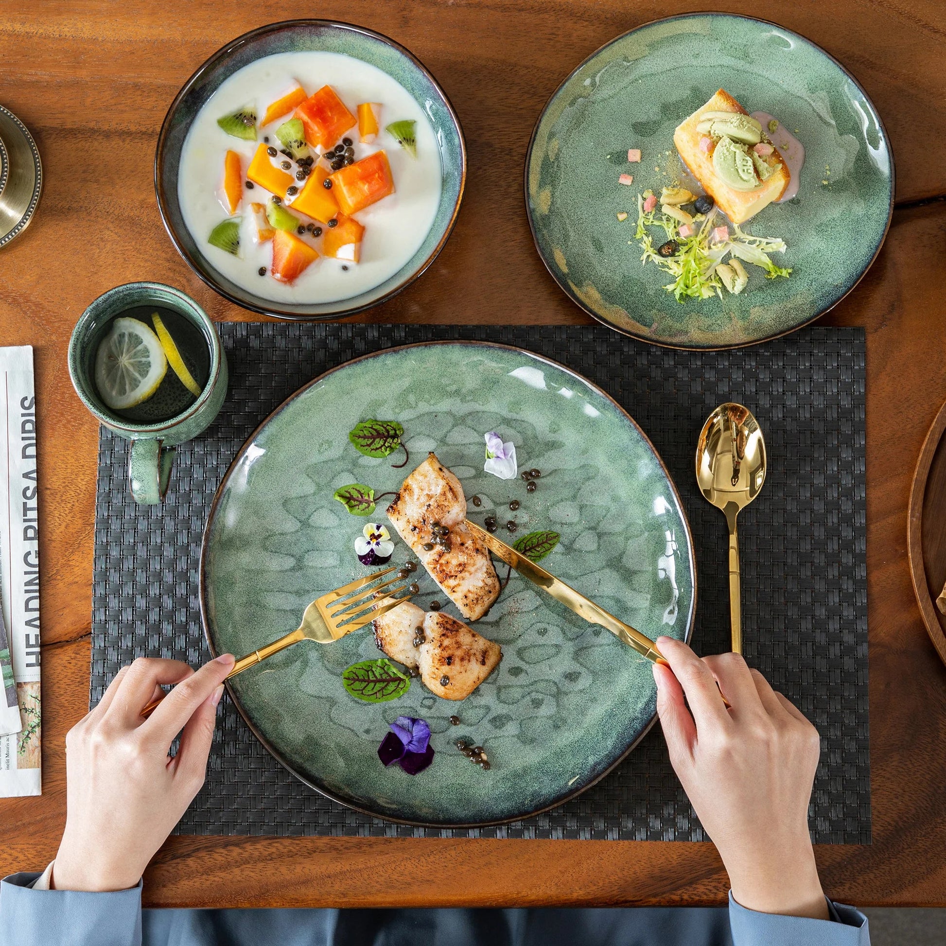 Dodaj Kolorową Elegancję do Swojego Stołu z Zestawem Sztućców ElegantServe z Stali Nierdzewnej! Ten 24-elementowy zestaw w kolorze zielonym i złotym to idealne połączenie stylu i trwałości, które przekształci Twoje posiłki w wyrafinowane doświadczenie.