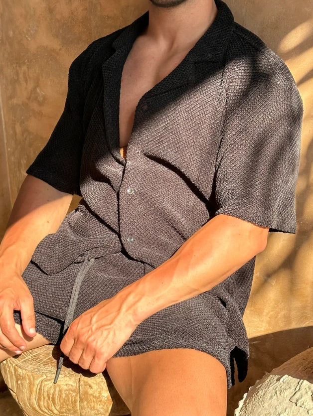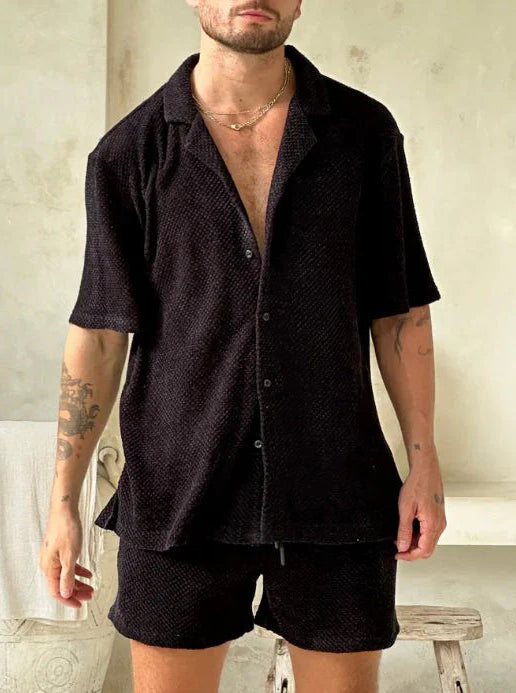 Doświadcz najwyższego komfortu i ponadczasowego stylu z kompletem Xavi dla mężczyzn. Wykonany z wysokiej jakości lnu, ten zestaw to idealny wybór dla nowoczesnego mężczyzny, który ceni komfort i klasę podczas gorących letnich dni.